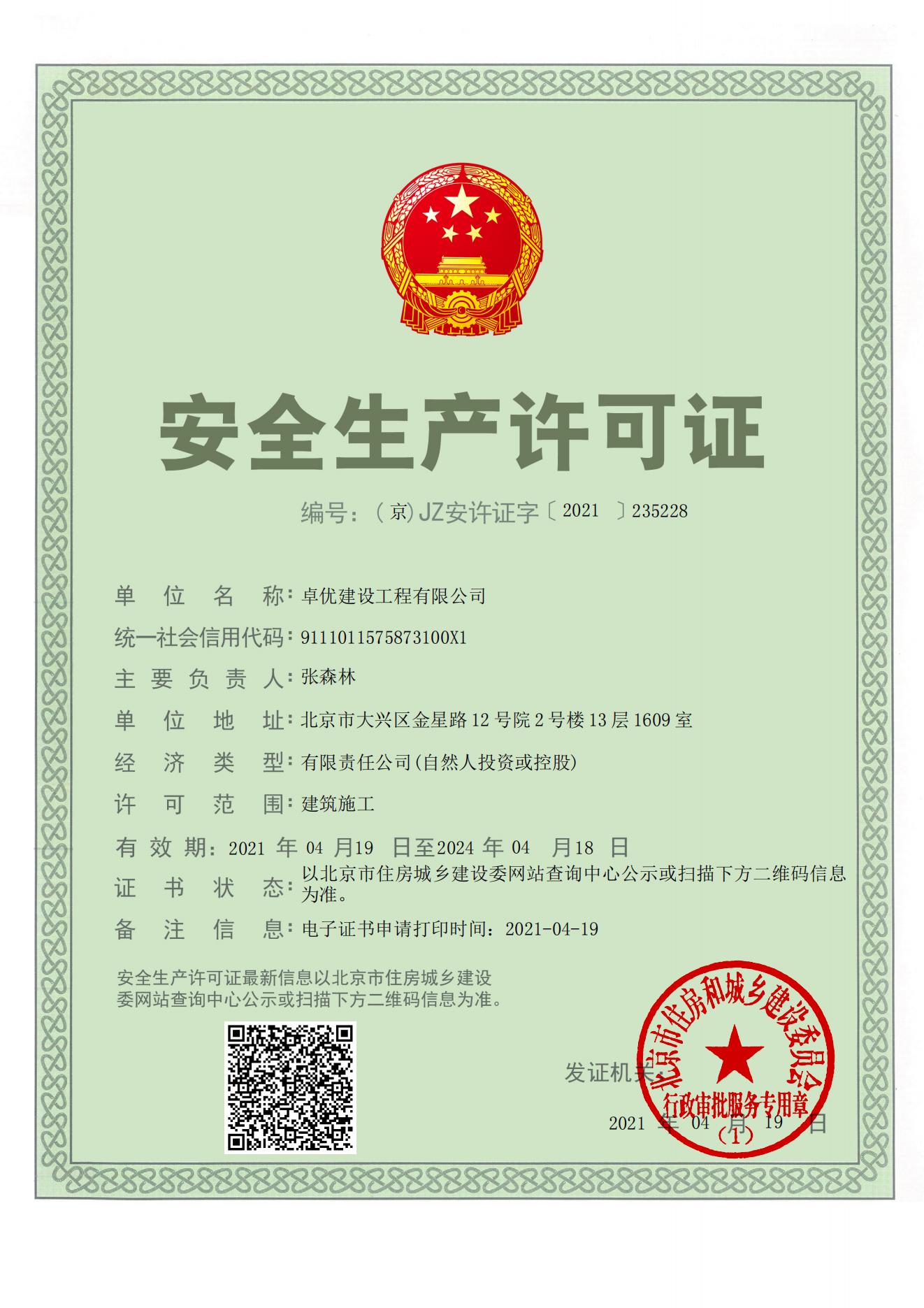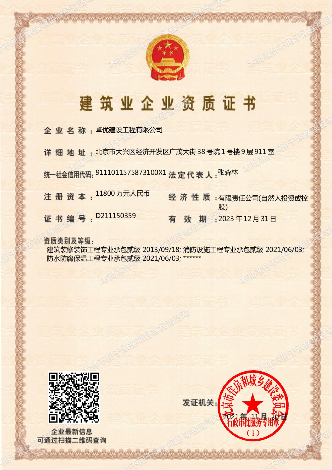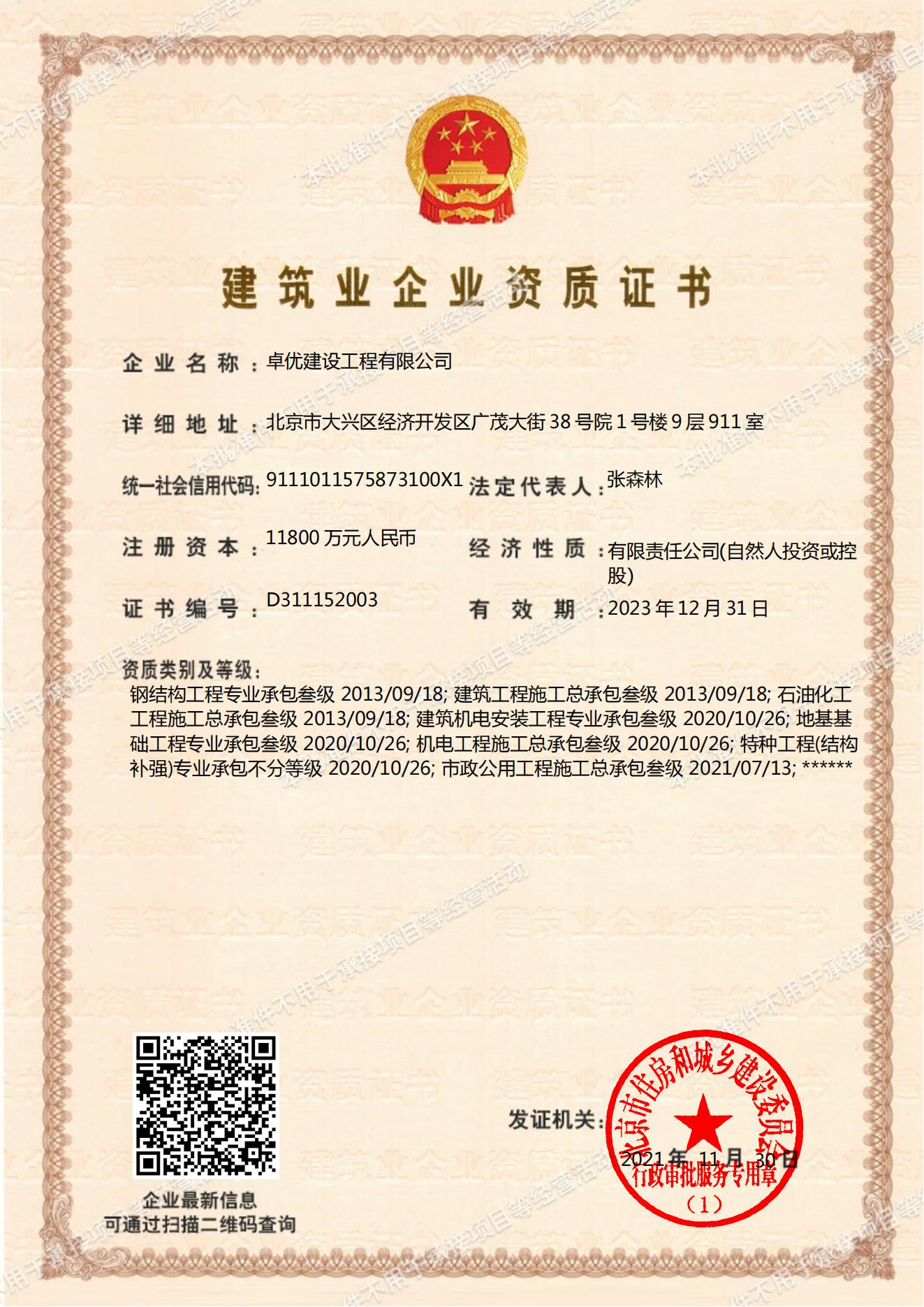 北京卓優建設集團有限公司,注冊資金 1.88 億元,集團資質: