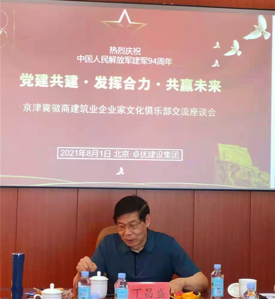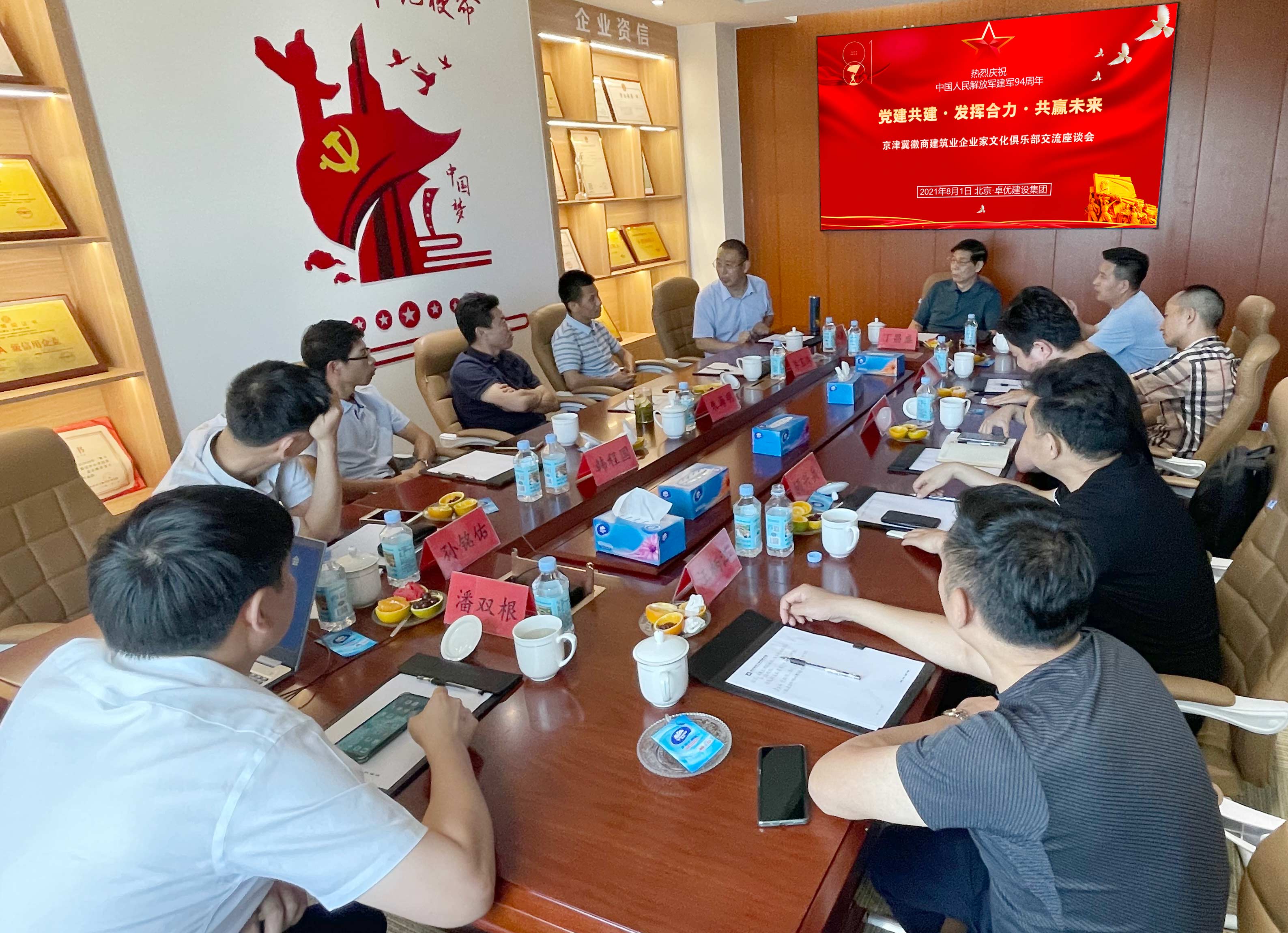 黨建共建,發揮合力,共贏未來。2021年8月1日京津冀徽商建筑業企業家文化俱樂部座談會暨慶八一主題活動在北京卓優建設集團有限公司舉行。